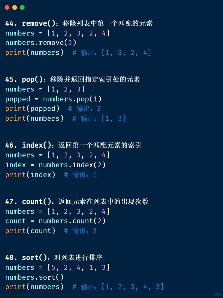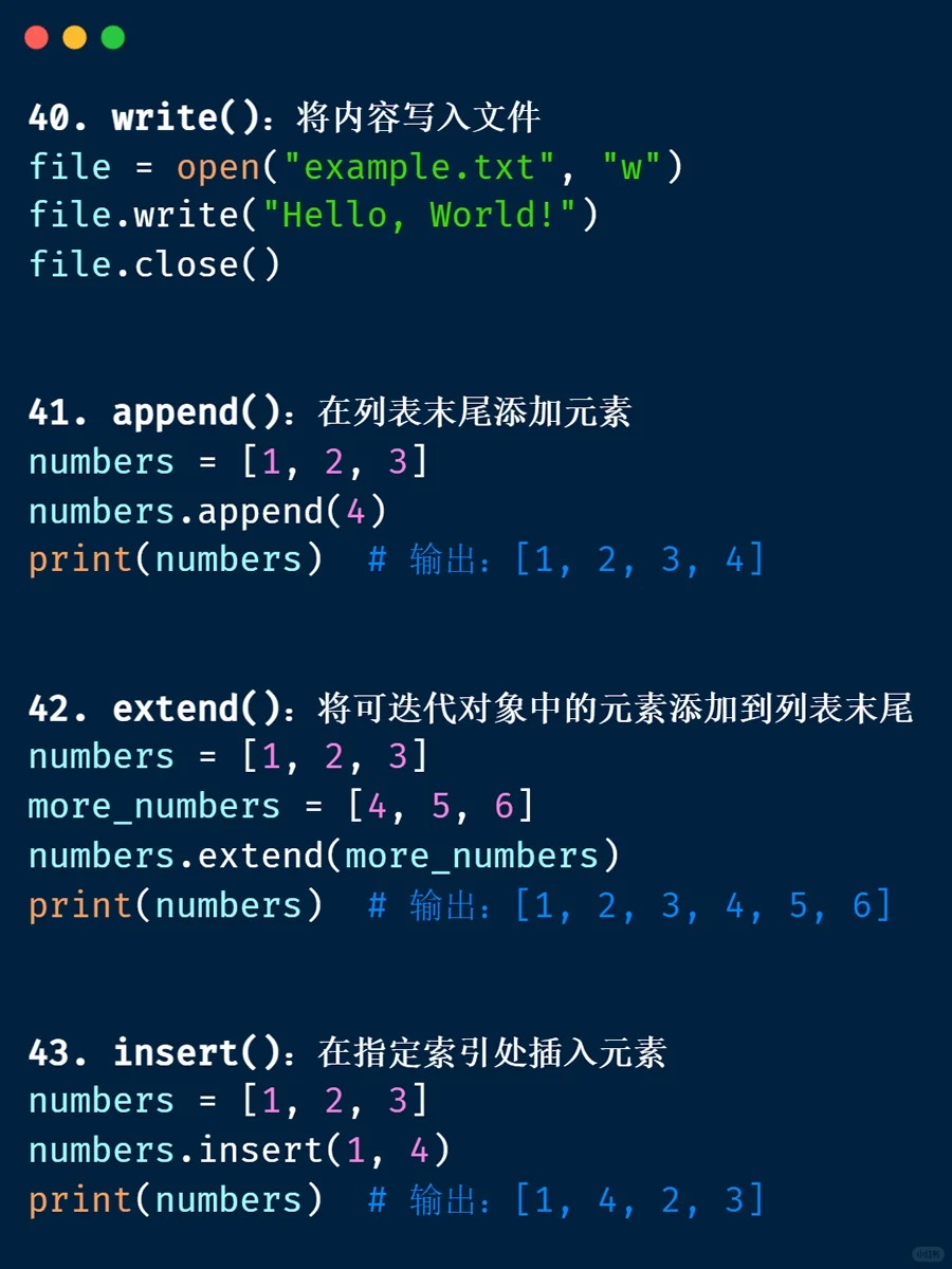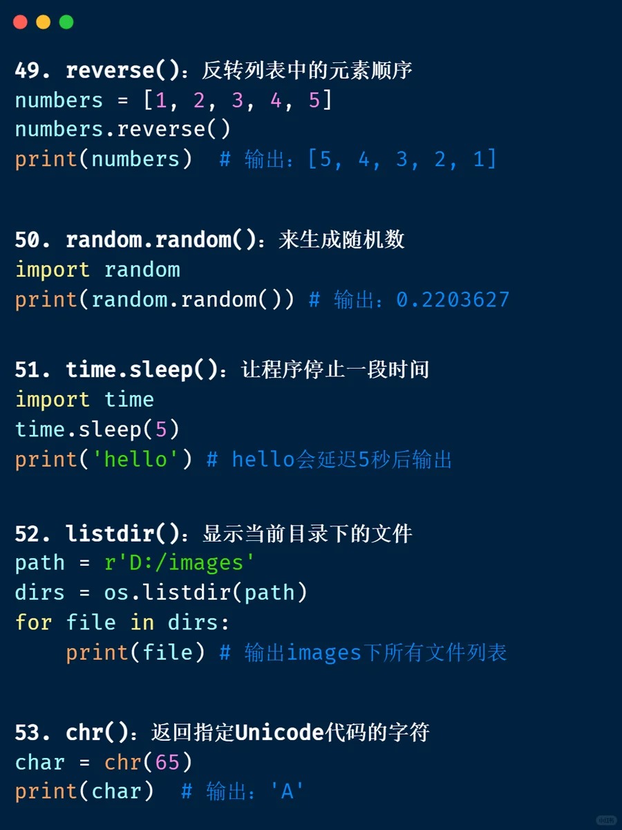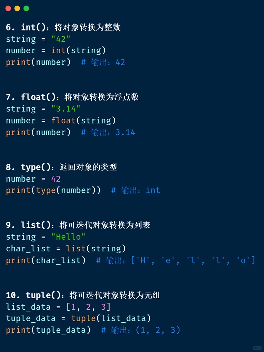 内置函数 📁 <Category 7> 📅 2026-04-04 13:39:53 👁️ 1 次阅读 <Tag 56> 📑 目录 📖 正文内容 💡 示例代码 💭 技巧提示 📚 参考资料 📖 正文内容 内置函数abs()divmod()input()open()staticmethod()all()enumerate()int()ord()str()any()eval()isinstance()pow()sum()basestring()execfile()issubclass()print()super()bin()file()iter()property()tuple()bool()filter()len()range()type()bytearray()float()list()raw_input()unichr()callable()format()locals()reduce()unicode()chr()frozenset()long()reload()vars()classmethod()getattr()map()repr()xrange()cmp()globals()max()reverse()zip()compile()hasattr()memoryview()round()__import__()complex()hash()min()set()delattr()help()next()setattr()dict()hex()object()slice()dir()id()oct()sorted()exec 内置表达式 💡 示例代码 💭 技巧提示 💡 📚 参考资料 🔗 相关文章 暂无相关文章